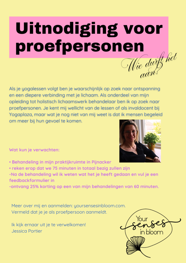 yoursensesinbloom Geplaatst op 9 april 2025 Geplaatst in Uitnodiging proefpersoon Getagd met behandeling, holistisch, lichaamswerk, pijnacker, proefpersoon